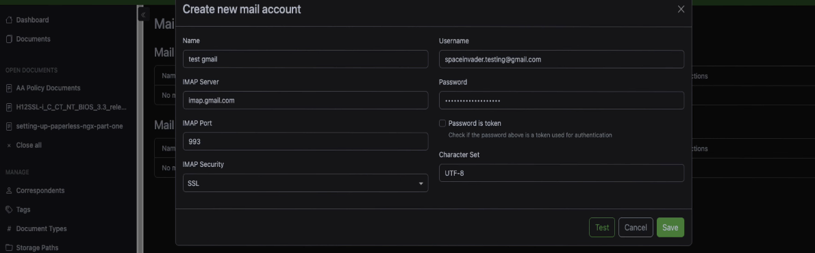 Go back to Paperless AI and paste the token in. Fill in your Paperless username as well.