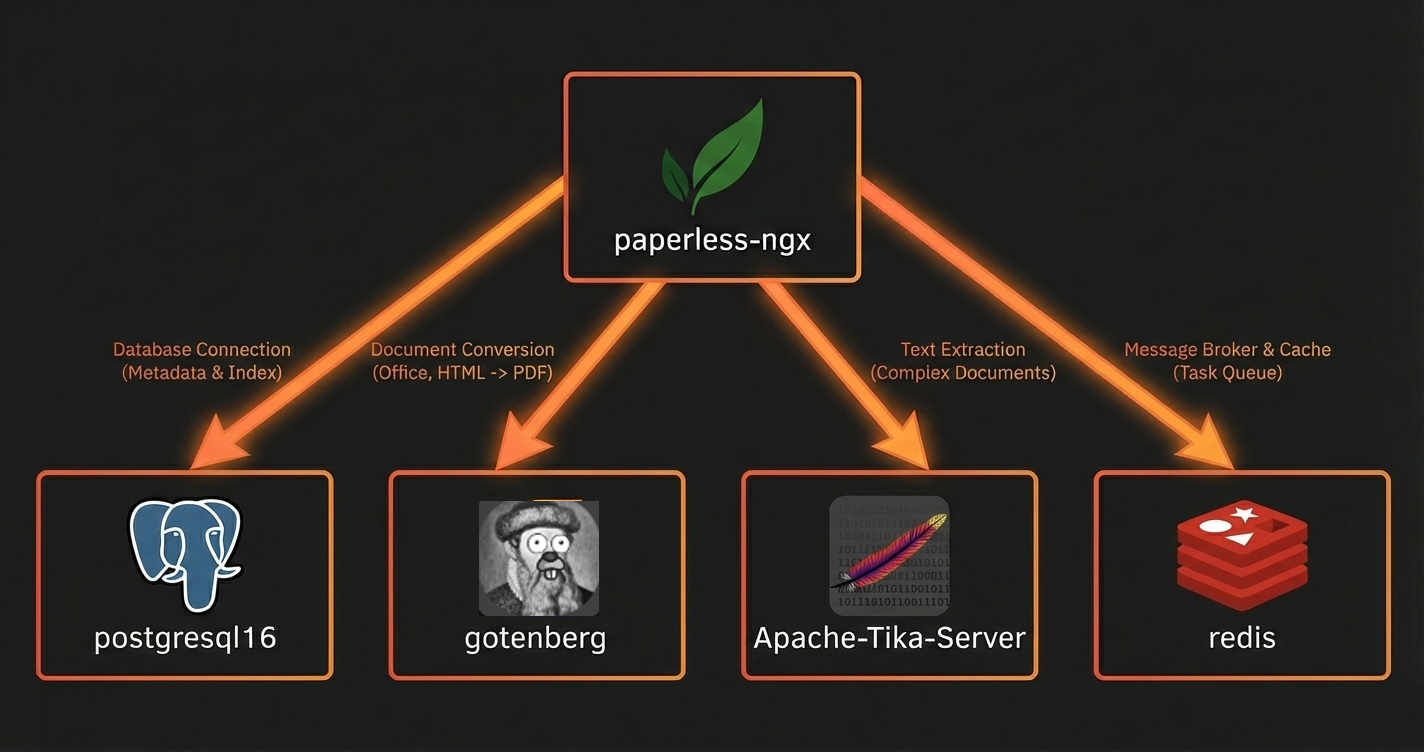 Paperless comes with a built in SQLite database, so you might be wondering why we're bothering with Postgres. The simple answer is performance and reliability. SQLite is fine when you're starting out with a handful of documents, but once you've got hundreds or thousands of documents being indexed and searched, Postgres handles it much better. It's also better at dealing with multiple things happening at the same time, like documents being uploaded while OCR is running while someone's doing a search. The Paperless team recommends Postgres for anything beyond basic testing, and since we're setting this up properly from the start, we're going with Postgres.